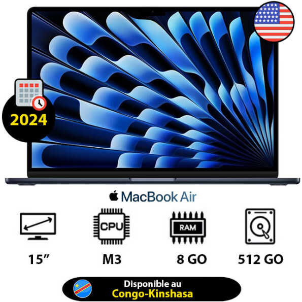 MacBook Air – 2024 | M3 – 15″ – 8 Go – 512 Go SSD – QWERTY