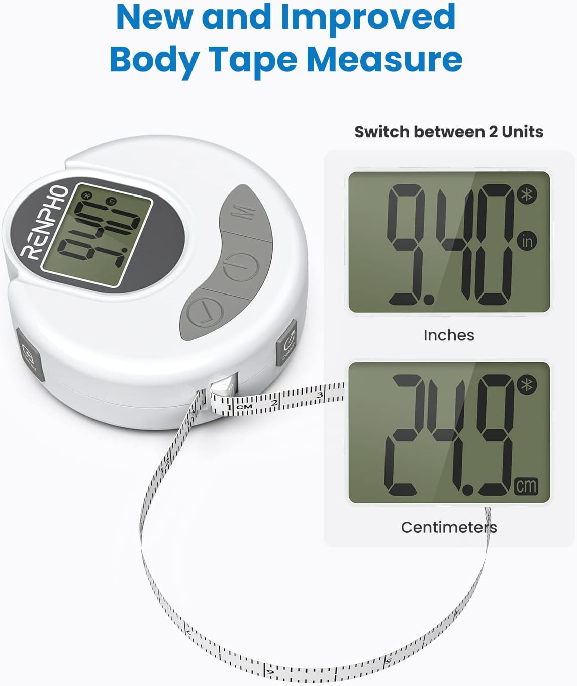 Mètre Ruban Rétractable et Connecté avec Application Bluetooth pour Mesure du Corps, Perte de Poids, Gain de Muscle, Remise en Forme et Musculation Pouces et Centimètres